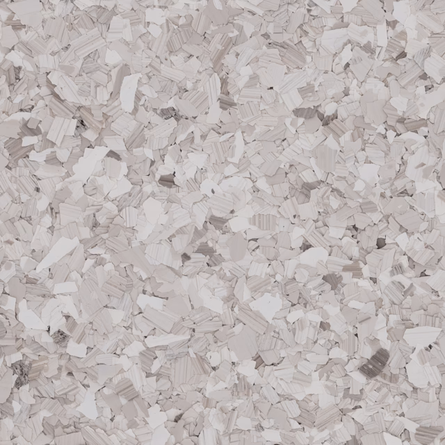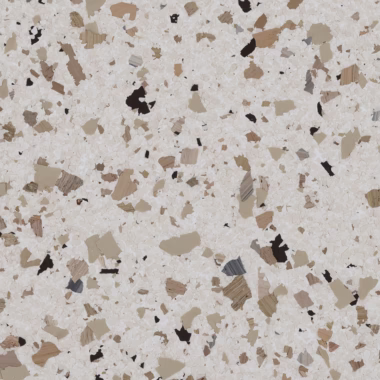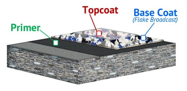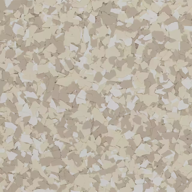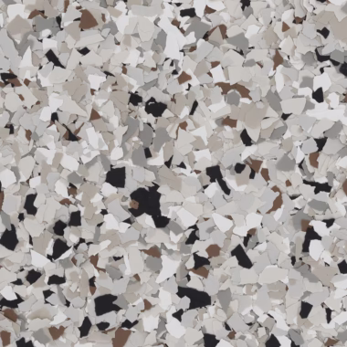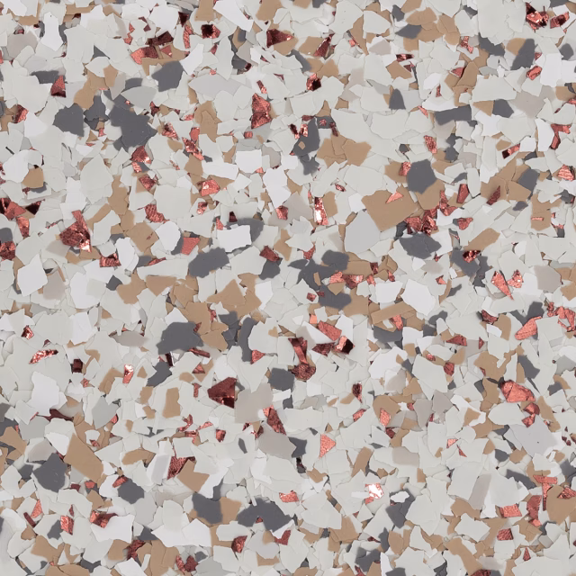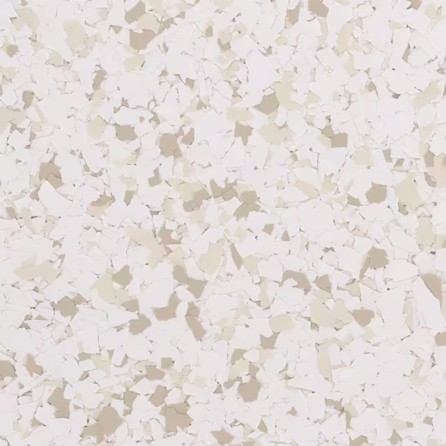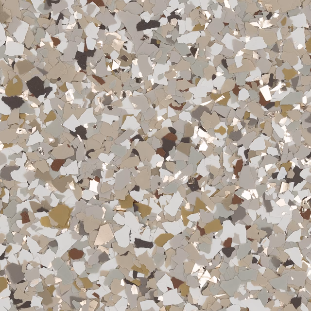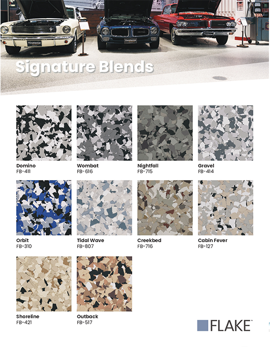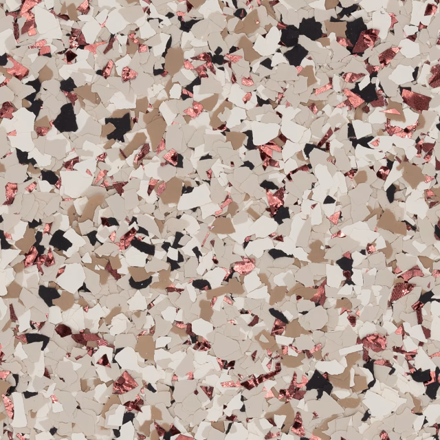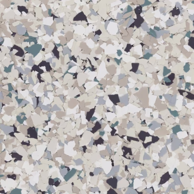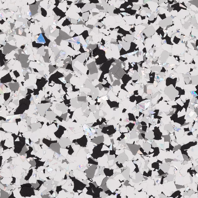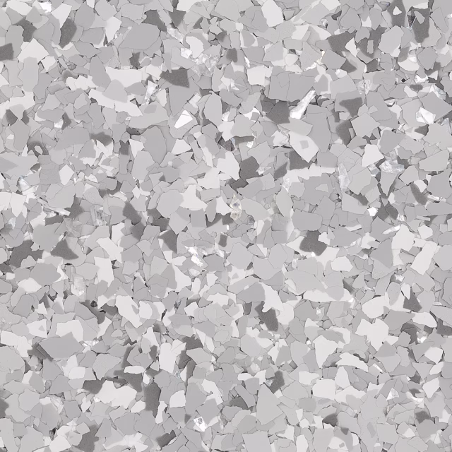 | RENEWABLE | An epoxy flake floor system can be renewed over time by sanding the surface and applying a fresh topcoat, restoring beauty and durability. |