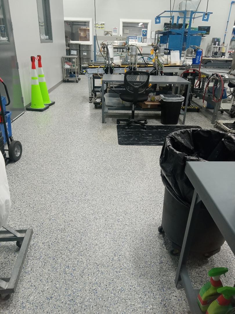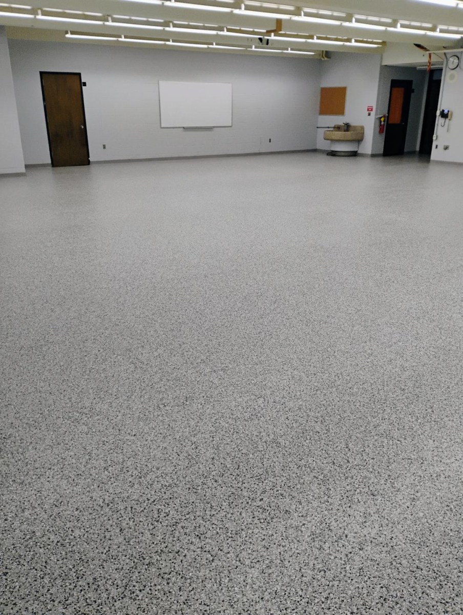 | LOW SOUND | Epoxy flooring with color flakes offers a flexible, seamless surface that reduces noise from foot traffic and rolling carts, creating a quieter environment. |